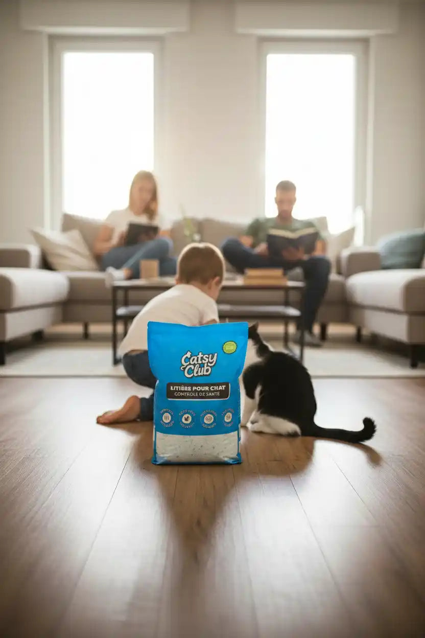 La litière CatsyClub est uniquement composée de matières saines et efficaces qui contribuent à supprimer les odeurs tout en étant sans danger pour la famille et ses animaux de compagnie.
